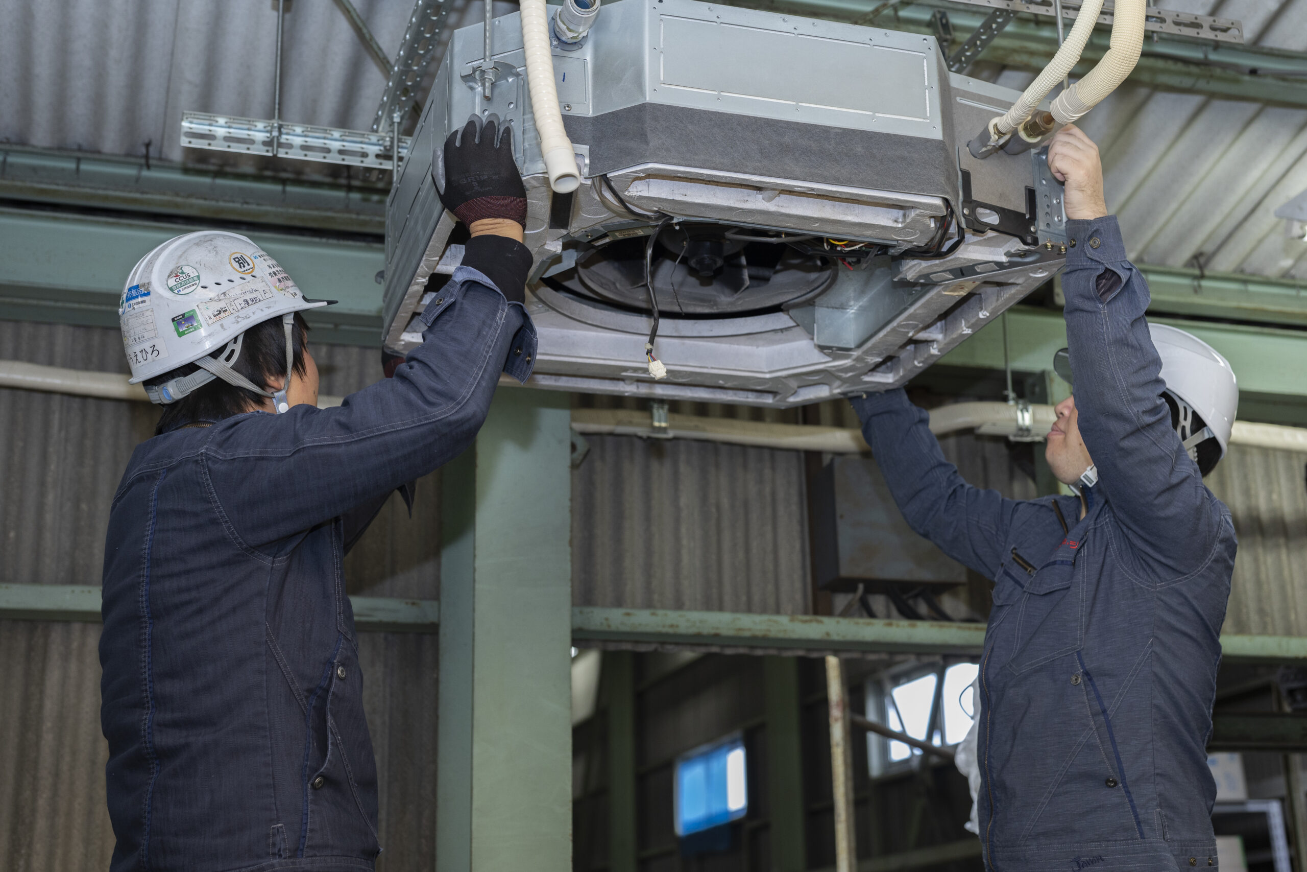 お客様ご指定の現場に赴き、空調設備の取替作業を開始します。